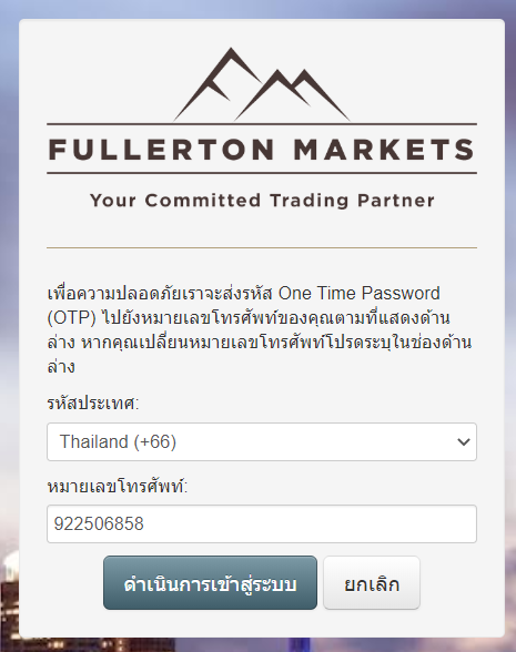 หากคุณประสบปัญหาหรือต้องการความช่วยเหลือในการตรวจสอบหมายเลขโทรศัพท์, โปรดติดต่อทีมซัพพอร์ตของเรา ผ่านทาง “Live chat” หรืออีเมล support@fullertonmarkets.com
