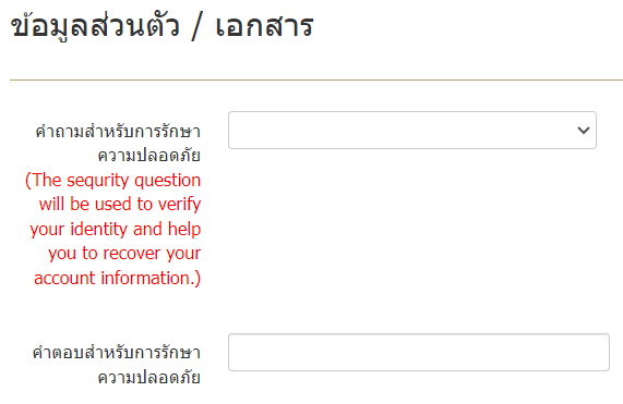 เลือกคำถามความปลอดภัยของคุณและใส่คำตอบของคุณ