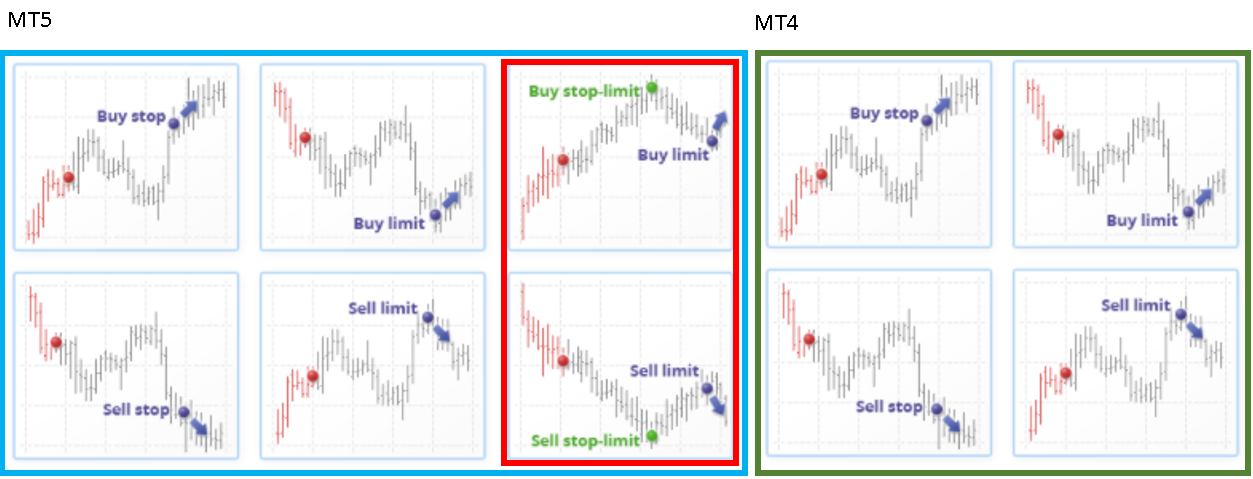 The 6 types of Pending order in MT5 platform are